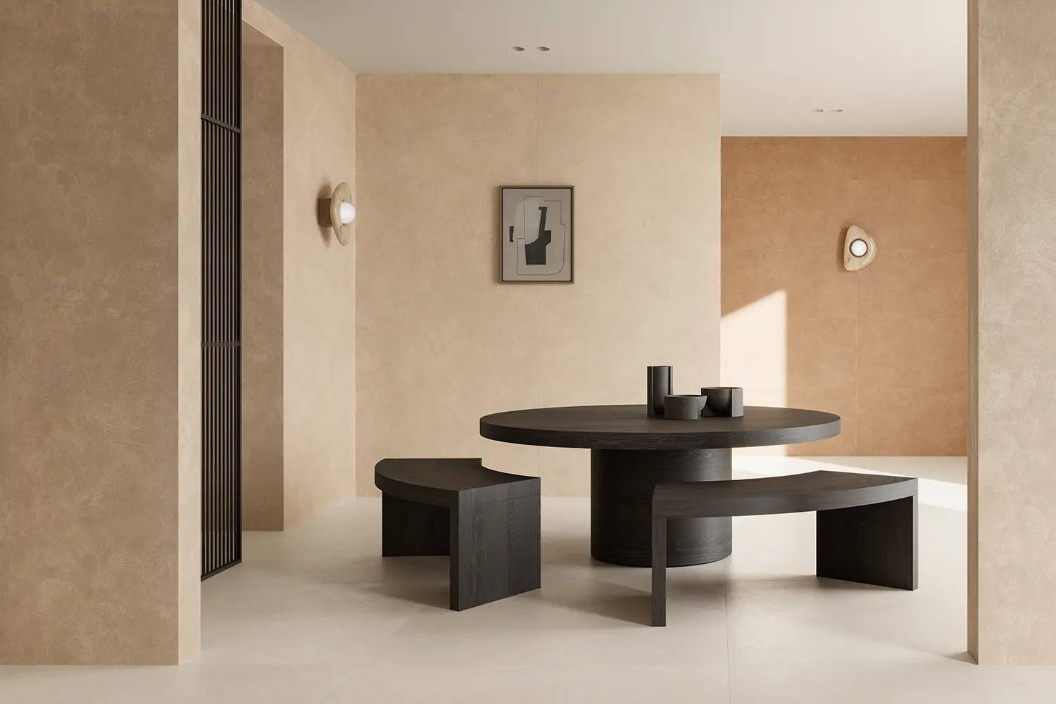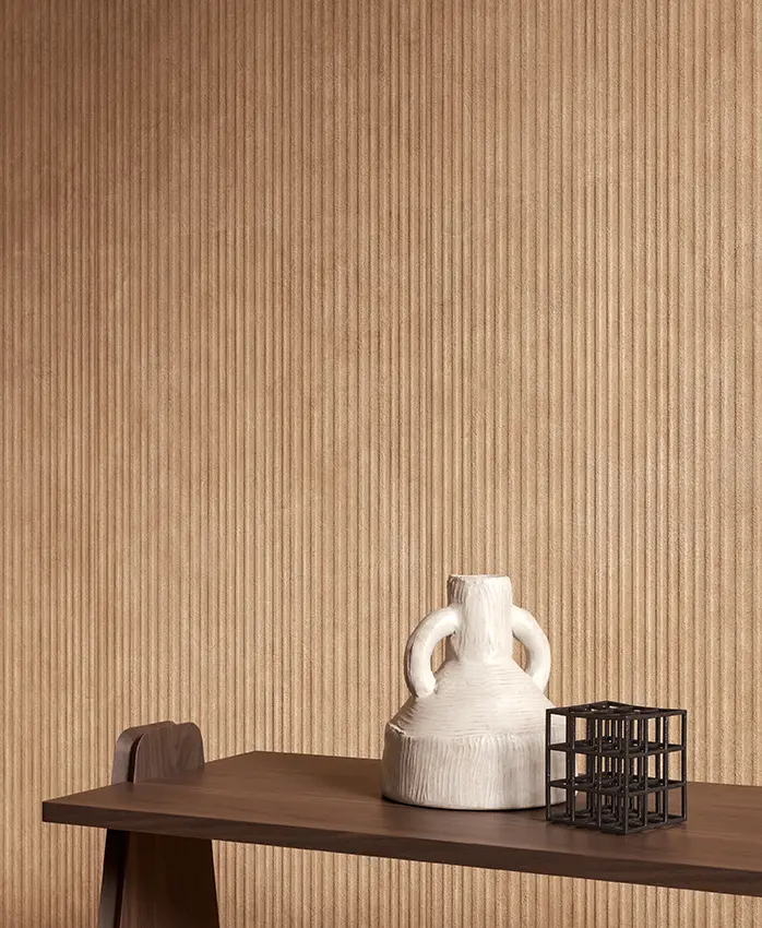 A sophisticated texture that captures the light with elegance and charm. With its minimalist yet polished aesthetic, this collection employs a palette of natural shades